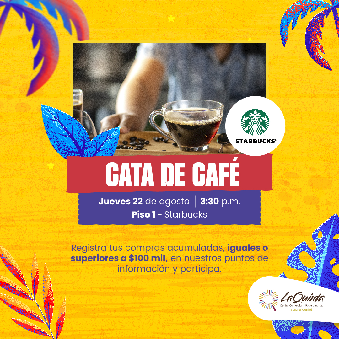 Visítanos y participa de una exquisita cata de café liderada por los mejores baristas de Starbucks BGA. Registra tus compras en nuestros puntos de información o vía WhatsApp al 3183627326 y participa. Hora: 3:30 p.m. Lugar: Piso 1 – Starbucks