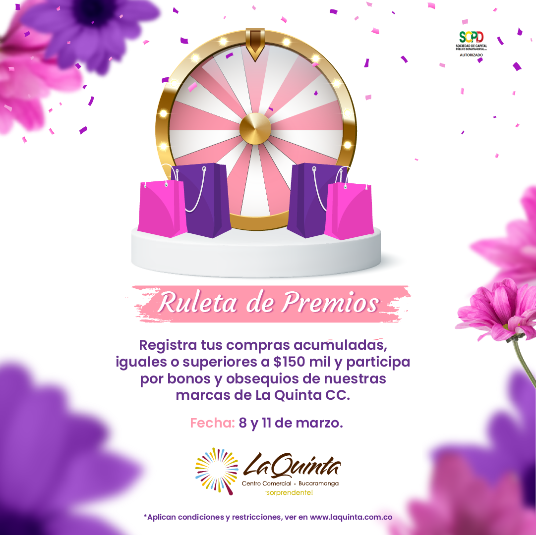 Registra tus compras acumuladas, iguales o superiores a $150 mil y participa por bonos y obsequios de nuestras marcas de La Quinta CC.
