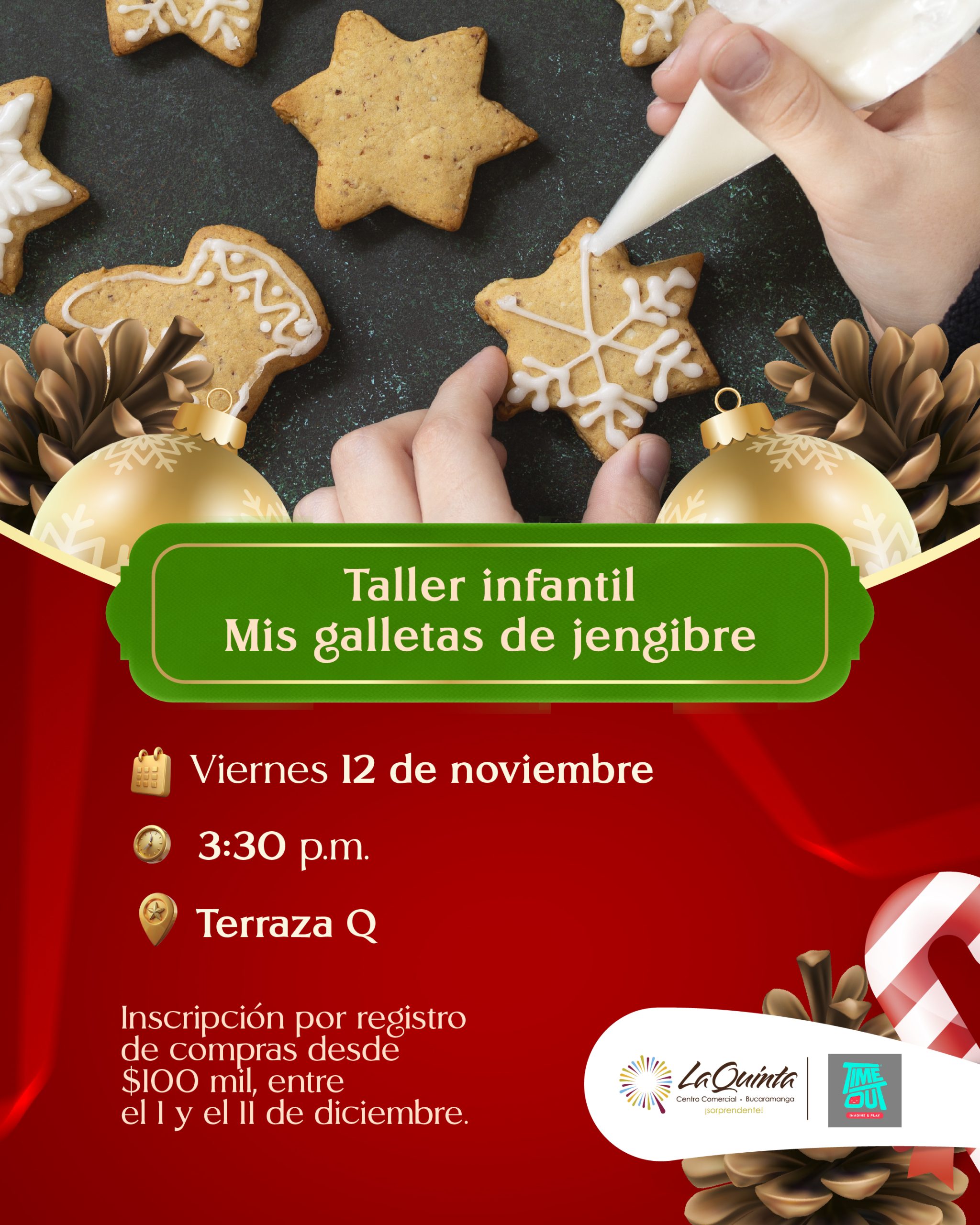 Por el registro de compras acumuladas iguales o superiores a $100 mil, nuestros clientes podrán inscribir a sus hijos (entre 4 y 10 años) en las siguientes actividades especiales. Registros de facturas del 1 al 11 de diciembre. Fecha taller: viernes 12 de diciembre. Tema: Crea tu gorrito de Navidad Hora: 3:30 p.m.